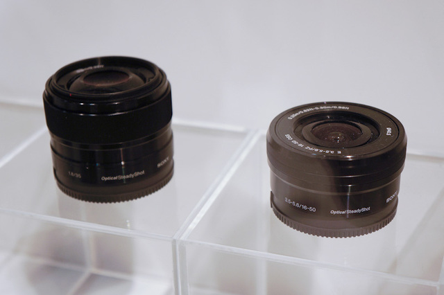 大口径標準単焦点レンズ「SEL35F1.8」(写真左)
