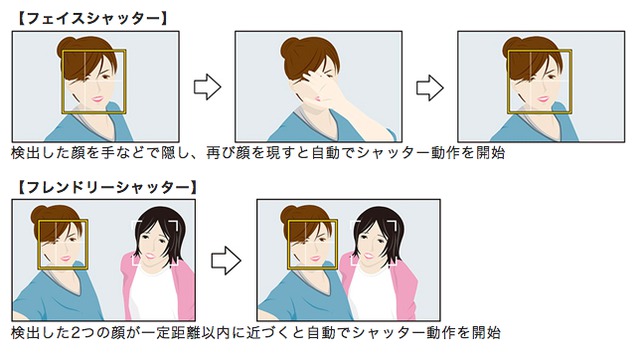 新機能「フェイスシャッター」「フレンドリーシャッター」を用意
