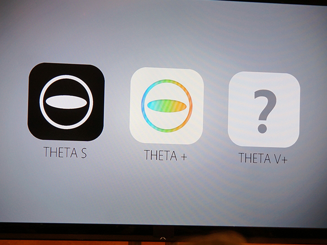 中央の「THEtA +」が全天球画像作成アプリ。動画用の新アプリ提供も考ええているという