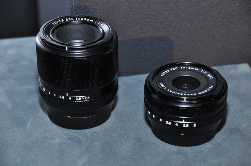 フジノンレンズXF60mm F2.4 R Macro(左側)/XF18mm F2 R(右側)