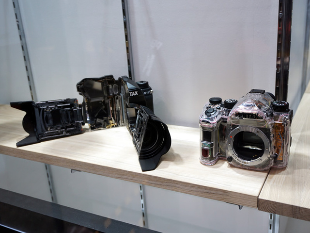 ペンタックス「K-1」も体験に長い列ができていた。スケルトンモデルなどの展示も