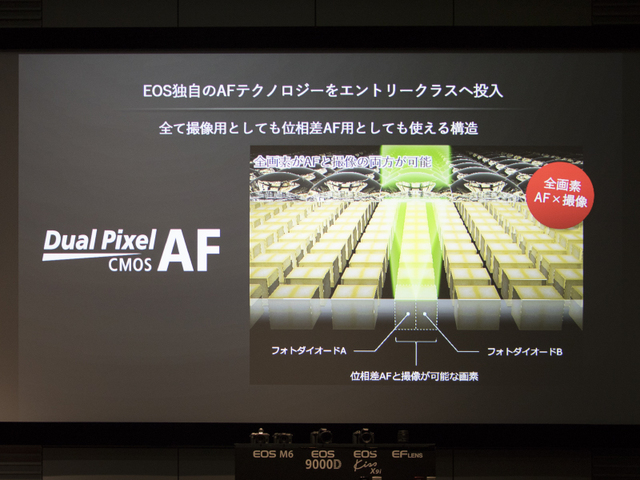 CMOSセンサー上の全ての画素を撮像だけでなく位相差AF用としても使える「デュアルピクセルCMOS AF」を搭載