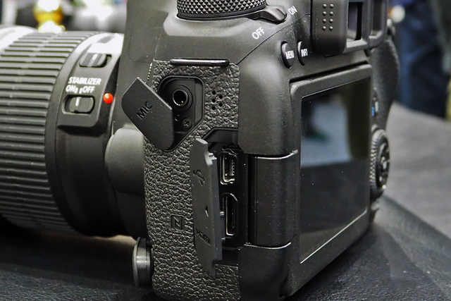 左側面にHDMI、USB、MIC、リモコン各端子を備える。