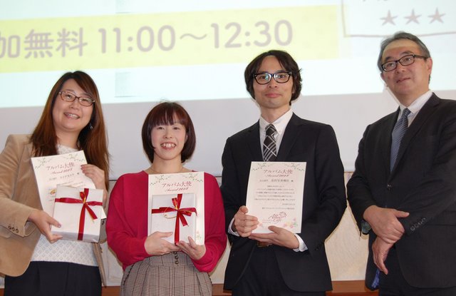 今年で開催6回目を迎える、1年間に活躍したアルバム大使を表彰する「アルバム大使アワード2018」の表彰式も併せて開催。富士フイルムイメージングシステムズ・吉村英紀氏(写真右端)から、受賞者に賞状が手渡された