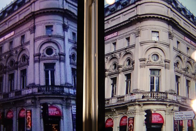 THETA V(左)との比較。ノイズが少なくなったほか、解像度も向上。またパープルフリンジが減少するなど、画質を向上したという