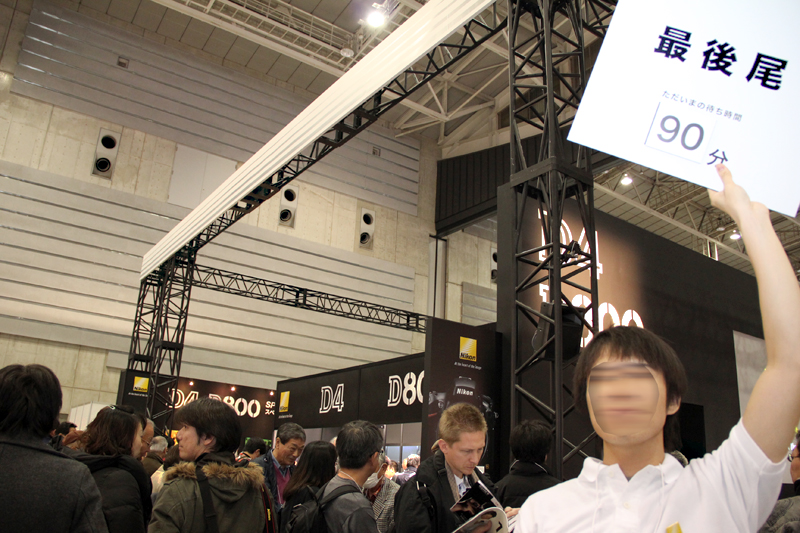 ニコンブース「D4」と、「D800」「D800E」のタッチ&トライコーナーには長蛇の列