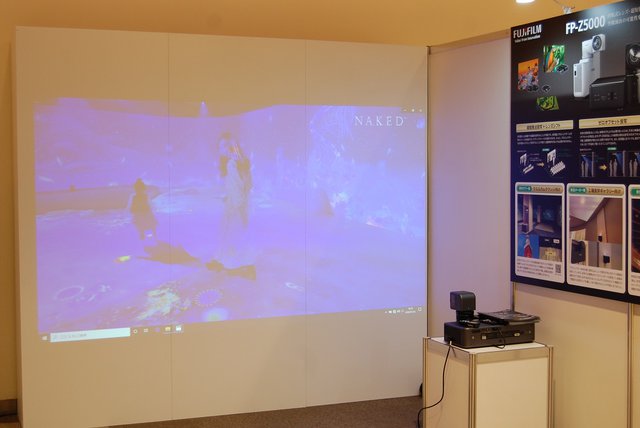 セールスポイントのひとつである斜め投射で実演するFP-Z5000