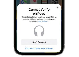 米9to5Macは、実際に偽造品をペアリングしようとすると「これらのヘッドフォンは、本物のAirPodsとして確認が取れず、期待通りの動作をしない可能性があります」とのメッセージが表示されると報告していた。さらに「詳細」ボタンをタップすると、アップル公式サイト内のサポート記事(「AirPodsのモデルを調べる」ページ)に移動するという。