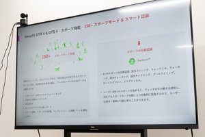 フィットネス計測では、154種類のスポーツモードを搭載する。ウォーキングやランニング、サイクリング、スイミングなどを選べるほか、8種類のスポーツ動作と15の筋力トレーニングエクササイズ(25種類に拡大予定)であれば自動認識できる。