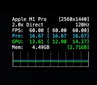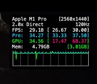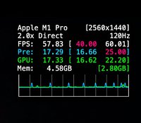 今回も、MetalFX Upscalingをオンにすると、フレームレートが一気に上がった。MetalFX Upscalingの設定には「Quality(画質重視)」と「Performance(速度重視)」の2つがある。前者は過去の映像も参照して高画質化する「MetalFX Temporal Upscaling」、後者は同じフレームの中だけを見て高画質化を行う「MetalFX Spatial Upscaling」だと思われる。