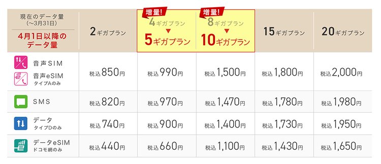それを示しているのが、MVNO大手のインターネットイニシアティブ(IIJ)が展開する「IIJmio」で、主力の「ギガプラン」を2023年4月1日に改定、月額料金を維持したまま通信量が4GBと8GBのプランをそれぞれ5GB、10GBに増量することを明らかにしている。
