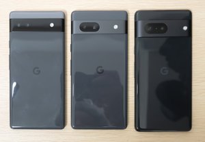 正直、ディスプレイ側から見るだけだと、「Pixel 6a」「Pixel 7」「Pixel 7a」を一目で見分けるのは難しい。Pixel 7が若干大きいくらいだろうか。