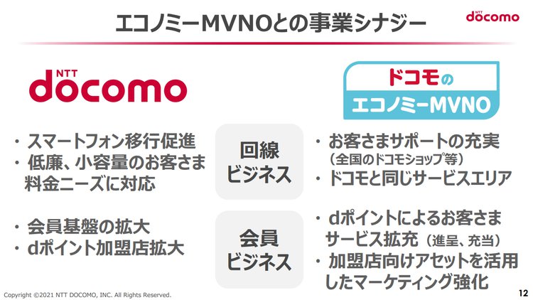 既にNTTドコモの子会社となった2社の間で、ネットワークを何度も貸し出しながらMVNOを運営しているというのは、傍から見れば非常に不自然と言わざるを得ない。それだけに、NTTドコモがNTTレゾナントを吸収することでこの複雑な関係が解消され、KDDIの「UQ mobile」やソフトバンクの「ワイモバイル」のように、NTTドコモのネットワークを直接利用したサブブランドとなることが期待されているのである。