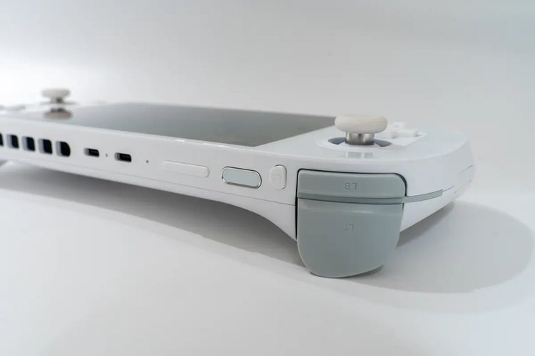 本体サイズは約264.5×105×21.5〜36.1mmで、ROG Ally(280.0×111.38×21.22〜32.43mm)より一回り小さい。前モデルとなるAYANEO 2からデザインは変わってはおらず、筐体サイズも同一。ただ、CPUがRyzen 7 7840Uになったことに伴い、冷却機能が強化されている。上部にある排気口もサイズが拡大し、瞬間的なエアフローは35%向上しているとのことだ。
