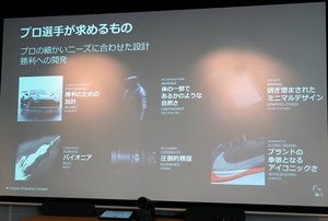 また、それら意見やフィードバックを踏まえてプロトタイプが完成した際には、「弊社のラボに選手たちを招待したり、時には彼らの練習場や大会にも出向き、そこで発生したフィードバックを取り入れてデザインや仕様に手を入れている」「このような工程を行うことで、選手たちのニーズにしっかりと応える製品を作り上げている」と強調した。