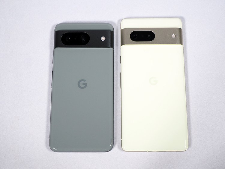 Pixel 8シリーズは、スタンダードモデルの「Pixel 8」と、大画面でより機能を多く備えている「Pixel 8 Pro」の2機種を用意しており、この点は前機種の「Pixel 7」シリーズと変わっていない。カメラ部分がバー状となった独自性のあるデザインは継承されており、ぱっと見には違いがないように見えるのだが、実際に以前のシリーズと比較するとさまざまな点で違いがある。