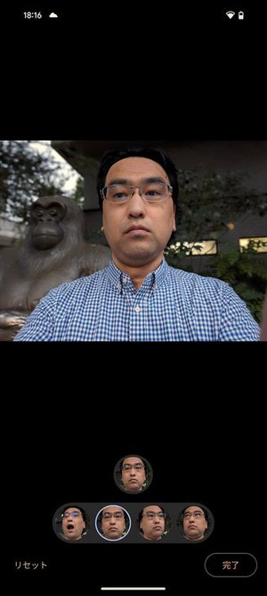 もちろん、AI技術を活用した機能の強化もなされており、新たに追加された機能の1つが「ベストテイク」。これは目を閉じてしまったり、横を向いてしまったりした人の顔を、似ている写真から組み合わせて入れ替えて補正するというもの。同じようなシーンの写真を複数撮る必要があるが、集合写真を撮影する際に便利な機能といえるだろう。