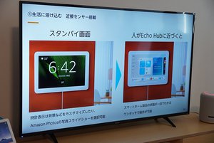 人が近くにいない未使用時には、お気に入りの写真や時刻などを表示するスタンバイ画面に切り替わる。Amazon Photosに保存した写真も表示可能で、「壁掛け時計や壁掛けフォトフレームとして活用できる」とアピールしている。