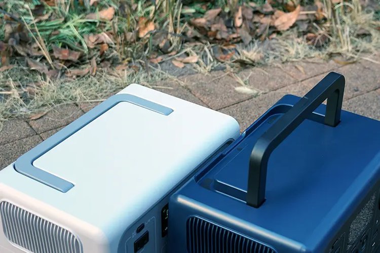 まずポータブル電源は、外観からも細やかなモノづくりに対する配慮が伺えるのが特徴だ。同シリーズのボディはネイビーを基本色としており、全モデルに持ち運び用のハンドルが付属。屋外へと手軽に持ち出せる仕様になっている。