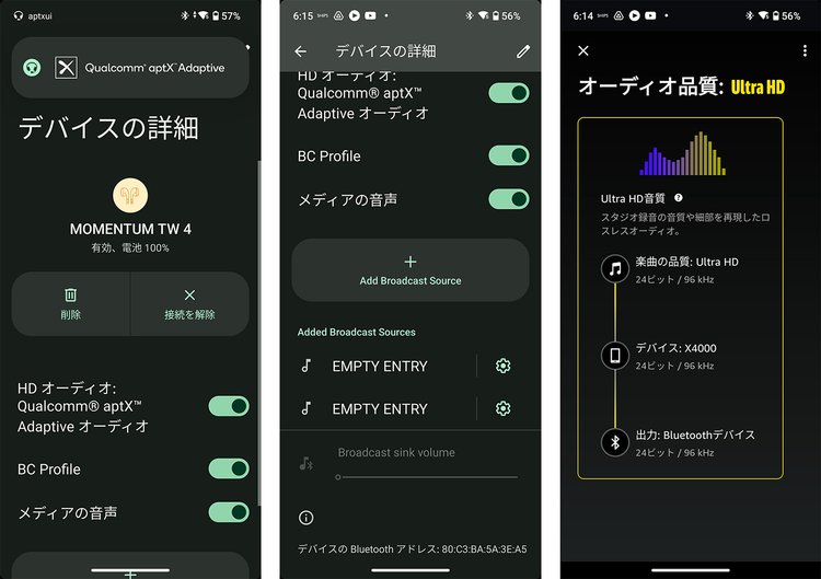 ゼンハイザーの完全ワイヤレスイヤホン「MOMENTUM True Wireless 4」とペアリングしてみたところ、LE AudioのAuracastブロードキャストにも対応しているようだった。最新のワイヤレスイヤホン・ヘッドホンの実力が引き出せるプレーヤーが3万円台で手に入るのであれば物欲をかき立てられる。
