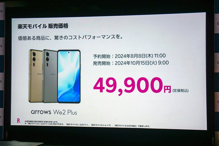 だが今回の発表会では、両機種の新たな販路も複数打ち出されている。その1つが楽天モバイルであり、同社はarrows We2 Plusを10月15日に発売することを明らかにしている。