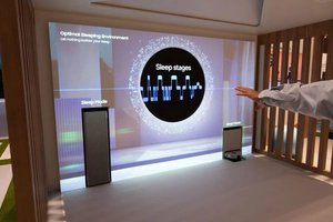 SmartThingのエリアでは、「プライバシーの保護」「省エネルギー」「シンプルなくらし」「健康の促進」「AIを用いたB2Bソリューション」というテーマごとに分けて展示。この中では日本未発売のスマートリング「Galaxy Ring」もアピールされており、リングが睡眠を検知すると、部屋の電気が消えて空気清浄機が自動でつく、というようなシステムも実現可能だと案内されていた。