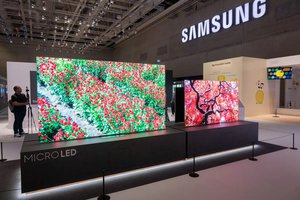 会場の一番奥は、テレビをはじめとするエンターテインメント機器のエリア。今年のCESで発表した透明有機EL「Transparent OLED Display」が披露されたほか、8Kテレビの「Neo QLED 8K AI TV」、マイクロLEDディスプレイも案内されている。