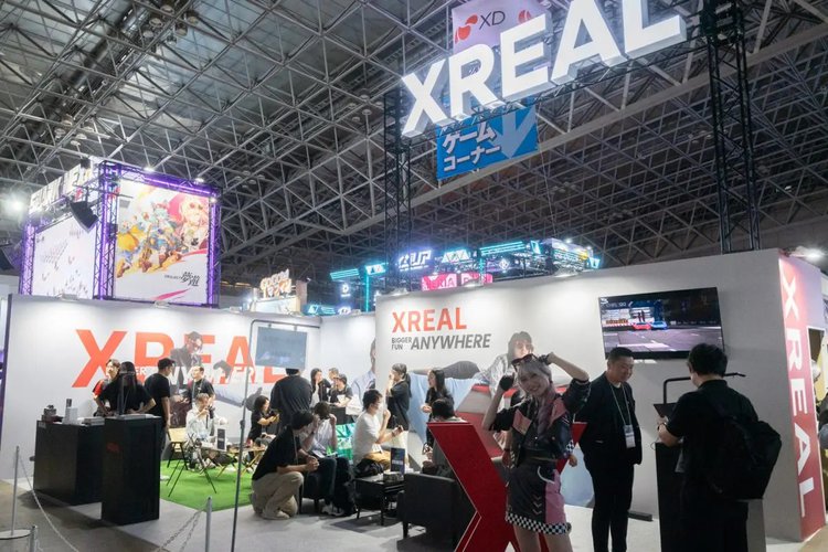 XREALはブースを出展し、同社のARグラスをアピール。スマートフォンやコンソール機など、さまざまなデバイスと組み合わせでARグラスの試遊を行っている。試遊タイトルは、スマートフォン向けのレーシングゲーム『レーシングマスター』などとコラボしているという。