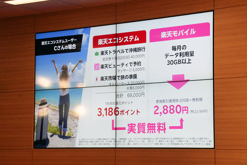 実際先の発表会でも、楽天グループのサービスを利用して「楽天ポイント」を獲得することで、楽天モバイルのサービスが実質的に “永年無料” で利用できることを積極的にアピールしていた。
