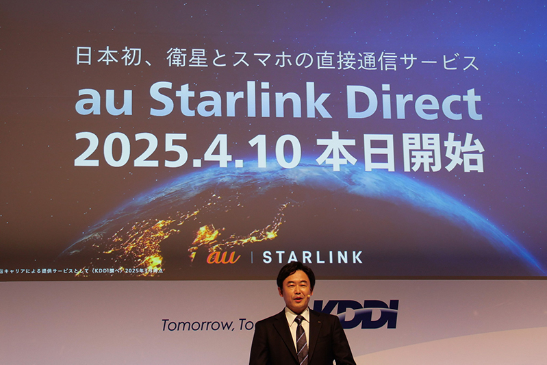 2025年4月1日、新たに松田浩路氏が代表取締役社長に就任したKDDI。その松田氏の社長就任会見が実施された2025年4月10日、同社は新たなサービスとして「au Starlink Direct」を提供すると発表している。