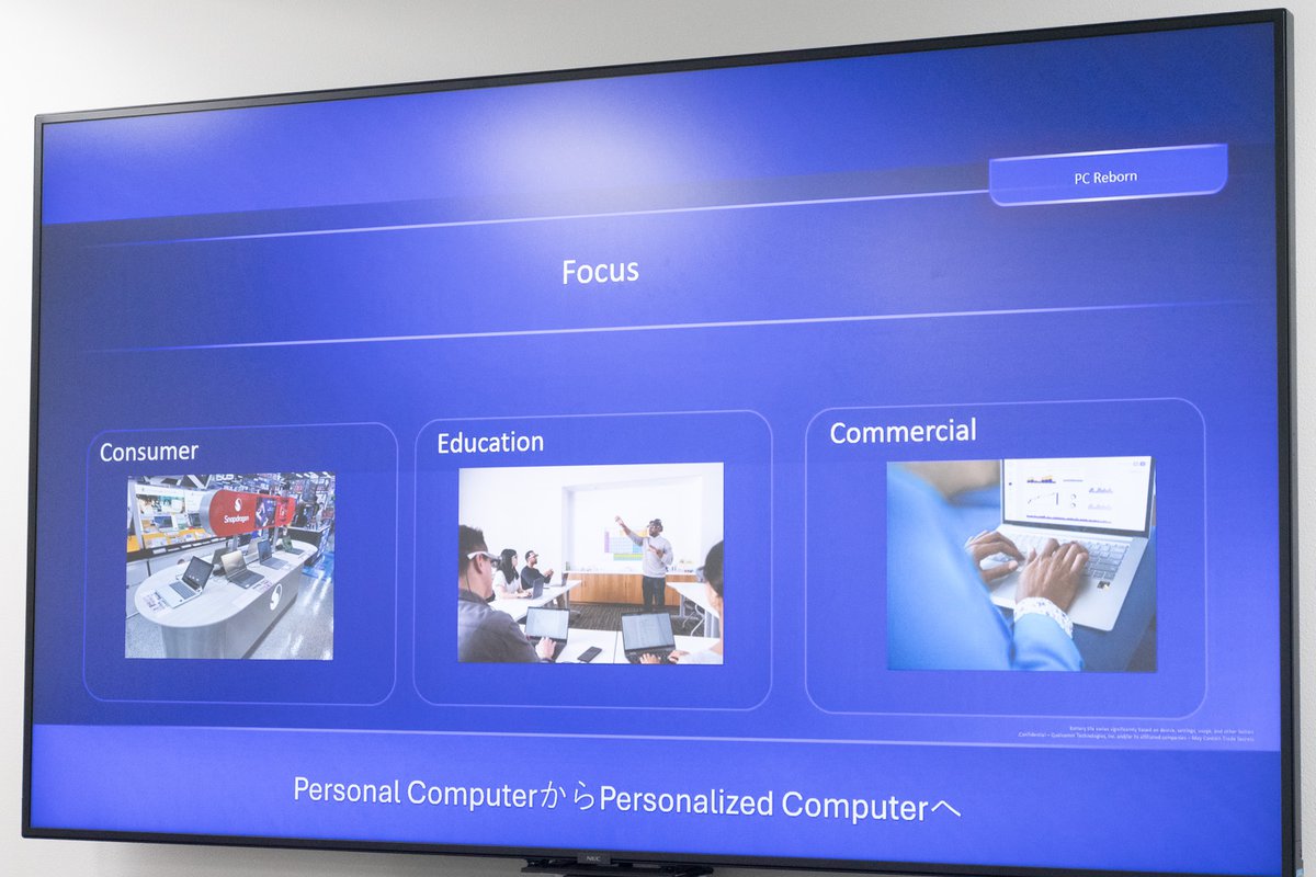 井田氏が掲げる「数年内にシェアを2ケタ台に伸ばす」という目標を達成するためには、コンシューマーPC市場に向けたSnapdragonシリーズのより積極的なアピールが欠かせない。一方で、法人クライアント向けの導入を促進するためには、各企業固有のニーズに寄り添いながら、カスタマイゼーションを含む丁寧な対応が必要になる。