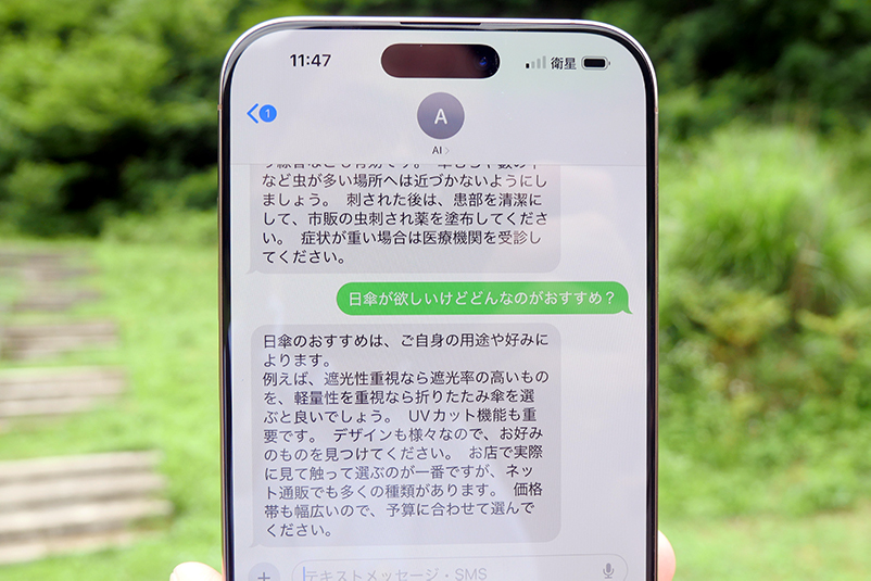 筆者は、au Starlink Directの商用サービス開始前に、沖縄県で実証実験をしていた時の様子を取材したことがあるが、その時はまだ衛星の数が少なく、衛星が上空を通過するタイミングに合わせて通信する必要があり、まだ不便な印象も受けていた。だが衛星の密度が増した今回、KDDIの電波が入らない茨城県内のキャンプ場で改めてau Starlink Directを試したところ、そうしたタイミングを選ぶことなくSMSの送受信が可能になり、実用性が大幅に増したと感じている。
