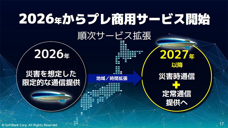 ただ、LTA型にせよHTA型にせよ、HAPSには北に行くほど運用が難しくなるという課題を抱えており、日本全国で利用できるようにするにはまだまだ技術の進化が求められる。それゆえソフトバンクもプレ商用サービス開始当初は、災害時など限定的な使用にとどめる方針を示している。