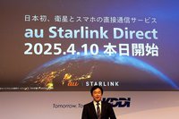その1つがau Starlink Directに関するものだ。au Starlink DirectはKDDIが、米Space Exploration Technologies(スペースX)の低軌道衛星「Starlink」を用いて実現しているサービスで、現在のところ利用できるのはSMSの送受信などに限られるが、7月10日にはユニークユーザー数が100万人に到達するなど、順調に利用を拡大しているようだ。