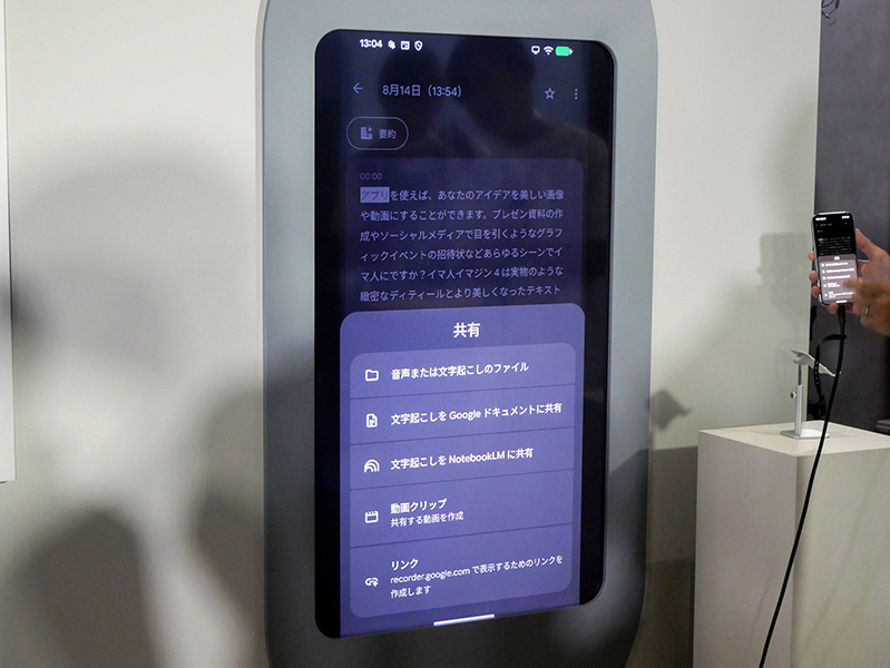 Pixelシリーズには、録音した音声をデバイス上のAI処理で直接文字起こししてくれる「レコーダー」アプリが以前より提供されているが、Pixel 10シリーズではそのレコーダーアプリに、文字起こしした文章を直接NotebookLMに取り込んで情報ソースとして活用できる機能を追加。あくまで取り込めるのはテキストのみで、録音した音声を直接取り込むことはできないそうだが、録音した会議をすぐNotebookLMに取り込んでまとめるなど、ビジネスで大いに役立つことは間違いない。