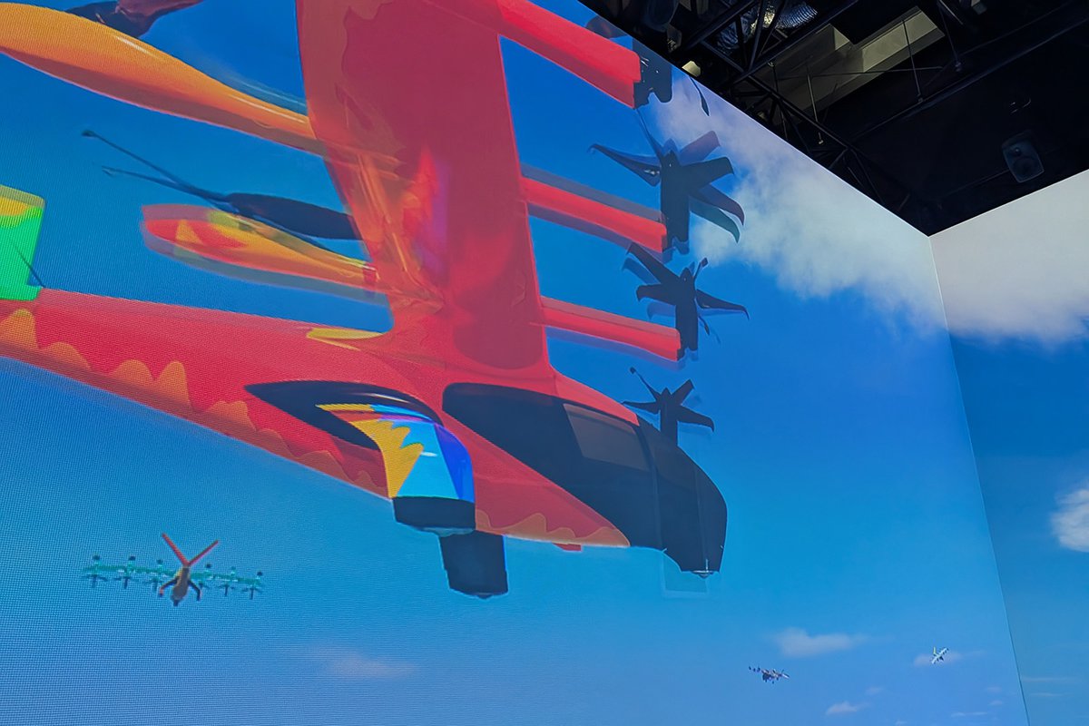 展示施設「空飛ぶクルマ ステーション」では、JALグループが将来の社会実装を目指すeVTOL(電動垂直離着陸機)の運航イメージが体験できるイマーシブシアター「SoraCruise by Japan Airlines」を公開している。ソニーの立体音響技術による空を飛んでいるような生々しいサウンドと、シアターの床に埋め込まれたハプティクスセンサーの振動が圧倒的な没入感を再現する。