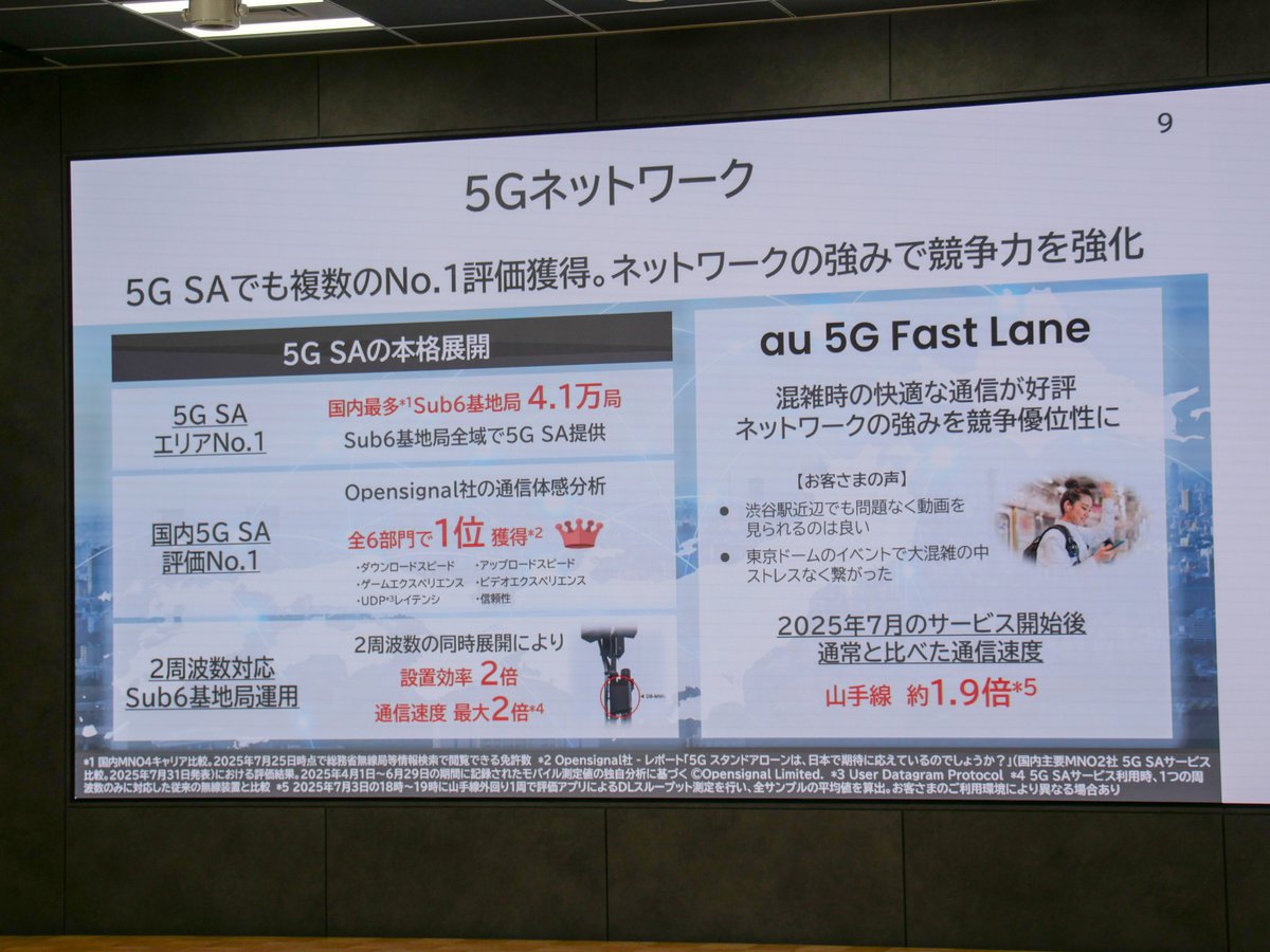 中でも移行を積極的に進めているのがKDDIだ。実際同社は、英国の調査会社であるOpensignalが2025年7月31日に公表した5G SAの調査で、国内ではKDDIがソフトバンクを上回り、最も高いパフォーマンスを示していたことが明らかにされている。