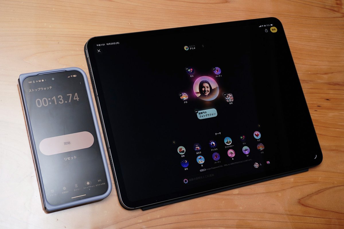 Apple Intelligenceの一部AIモデルを使うImage Playgroundアプリで、M5世代とM4世代のiPad Proによる画像の生成速度に違いが出るか試した。同じ条件とテーマを入力して画像を生成してみた結果、数秒の違いではあるがM5搭載iPad Proの方が速く4つの異なるパターンの画像をつくり出した。