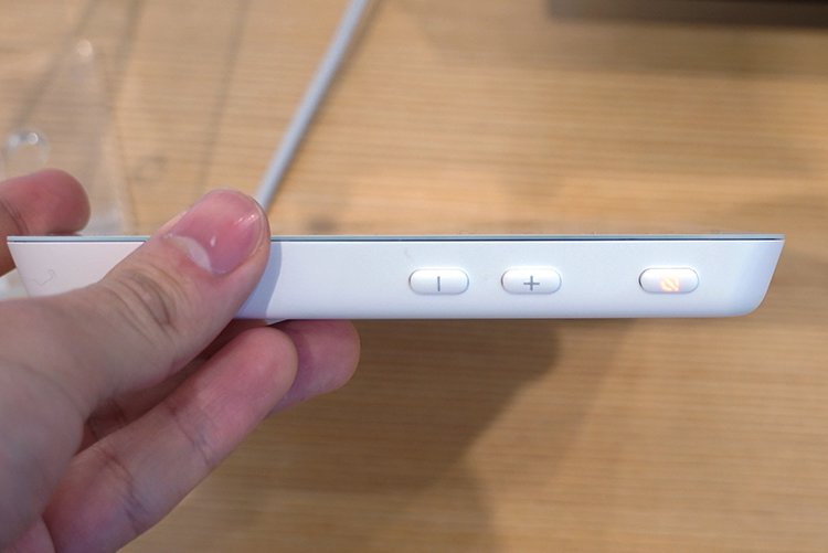 右端がマイクオン/オフボタン。押すと赤く光る仕様となっている