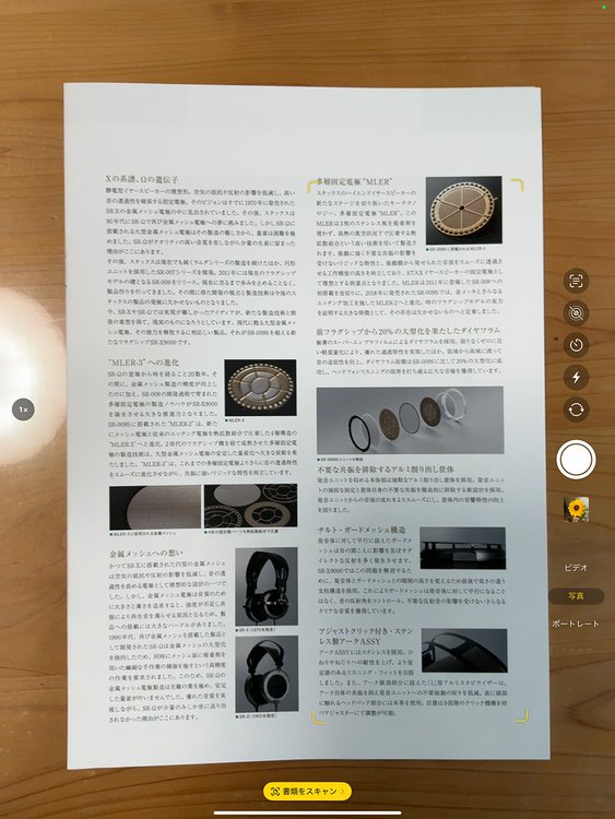 iPadのカメラをドキュメントに向けるとアプリの画面に「書類をスキャン」という黄色いアイコンが表示される