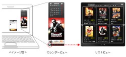 また、「カレンダービュー」と「リストビュー」の2つの画面デザインを用意し、簡単に切り替えることもできる。さらに、ぴあ(株)が提供する「シネマぴあ」と連携し、作品ごとの映画館検索も行える。