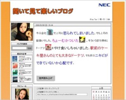 また、同社ではこれらの技術を利用したブログ作成システム「聞いて見て楽しいブログ」を開発。携帯電話から音声メッセージと写真をメールで送信するだけで、特徴的な音声合成による楽しい読み上げや、豊かな文字飾り付けなどがなされたブログを作成可能にした。