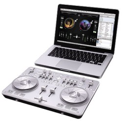 ジョグホイールはタッチセンサー式で、スクラッチやバックスピンなどのDJプレイが可能。マスター出力、モニター出力機能の2系統のステレオ出力に加えてマイク入力も装備。付属のグースネックマイクを使って音声にリアルタイムエフェクトをかけることや、録音ボタンでDJプレイを録音し、Bonjourネットワークを利用してネットワーク上に公開することなどが行える。