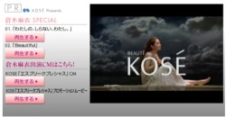 動画広告は(株)コーセーが提供。「KOSE Presents 倉木麻衣 SPECIAL」として、エスプリーク プレシャスのCMソングとして使用されている「わたしの、しらない、わたし。」のミュージックビデオをはじめ、テレビCMではみることができないスペシャルプロモーションムービーなどを無料配信する。