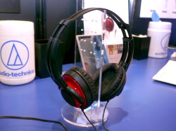 ブース内には“SOLID BASS”「ATH-WS70」などのオーバーヘッド型やスポーツ用に防滴仕様とした“PLAYERS LINE”「ATH-CP300」、Bluetooth対応タイプの「ATH-BT02」など様々な製品を展示。出演アーティストの楽曲を収録したiPodも用意し、それらの音楽で製品を試聴できるようにしている。