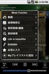 米Gracenote社と共同開発した音楽検索システムを搭載。Gracenote社のデータベースと音楽認証システムを本アプリに連携させ、任意の音源を本アプリに聴かせることによる音楽検索が可能なほか、再生曲の歌詞やジャケットなどの情報も自動表示する。歌詞は邦楽13万曲+洋楽150万曲のデータを保有し、毎週約500曲の邦楽歌詞を追加しているという。未対応の歌詞の場合は、Google検索を行う。また、楽曲情報の詳細を表示する機能「Music Files」では、YouTube動画情報やアーティストのツアー情報なども表示する。