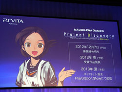 そのほか、「タイトル制作の門戸を広げる試み」(河野氏)として、角川ゲームスと起ち上げた「Project Discovery」を紹介。プロ・アマチュアの垣根を超えてシナリオやキャラクターデザインなどを募集するというもので、2013年夏にはパイロット版をPlayStation Storeにて配信する予定。そして「新しい才能や、新しいアイディアが、PS Vitaに集まってくれることを大きく期待している」と語った。