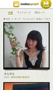 2011年にアメリカの写真家kevin BurgとJamie Beckによって「Cinemagraph(シネマグラフ)」と名付けられた、静止画の一部分が動画のように動く作品を作成できるアプリ。“Handycam”や“α”で培った手ブレ補正技術や画像処理技術を投入することで、より精度の高いアニメーションを作成可能にしたとしている。