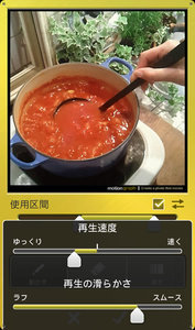 また、再生速度の調整も可能。動く部分を早送りのようにしたり、スローモーションのように表現することができる。さらに、動く部分の滑らかさの調整も行え、カクカクした動きにしたり、滑らかに動かしたりといったこともできる。