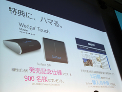 なお、国内発売開始とあわせて2つの購入特典も用意する。1つ目は、Microsoft製のタッチマウス「Wedge Touch Mouse」にSurfaceロゴをあしらった発売記念仕様モデルを、製品購入者の中から限定900名にプレゼントするというもの。詳細は後日Twitterなどで告知されるという。2つ目は、アプリで閲覧できる日本経済新聞の電子版有料サービスの10日間無料チケットを、オンライン購入者を除く製品購入者全員に提供するというものだ。